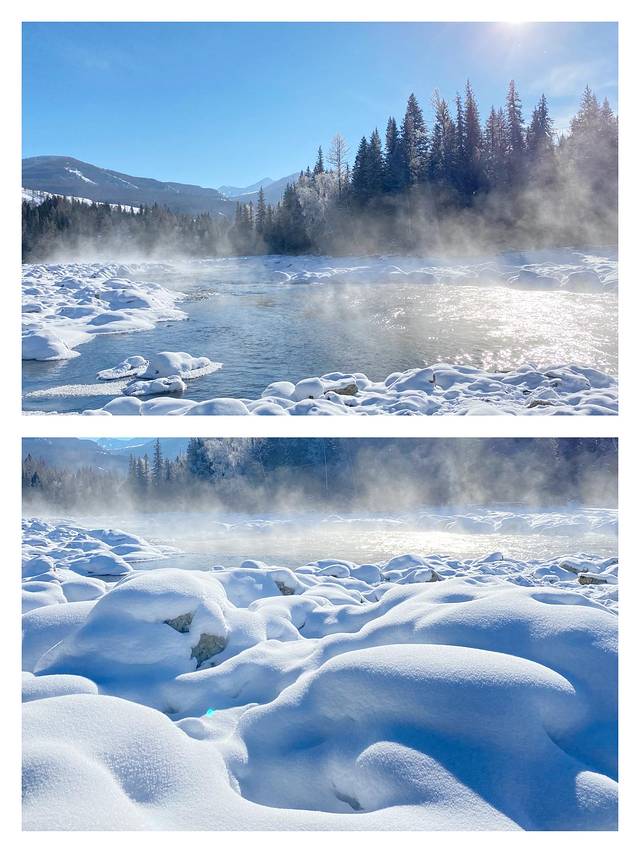 开车十分钟就到了古海温泉,据说古海温泉水龄有7.7亿年,水中富含微量元素,当天晚上住宿在古海温泉酒店,泡温泉就是免费的。至于泡温泉的感受,大概就是“冰火两重天”吧。晚上室外温度有零下二十度,温泉池是42度。头发结冰,脸上出汗,现在想想也是受罪的体验。第二天上午小伙伴儿们兴致未足又去泡了。我是不愿意去,窝在房间里整理照片视频。房间里因为是地暖,温度很高。感觉在室内穿短袖都没有问题呢。