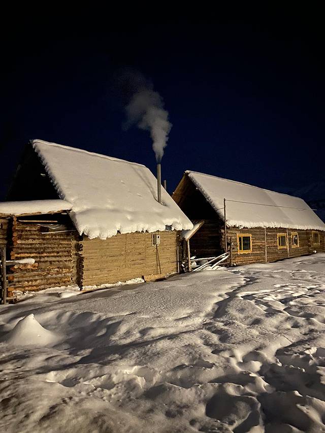 第二天一大早起来,准备去看日出。从民宿走到看日出的哈登观景平台大约需要半小时。八点半准备出发时,民宿大叔迷瞪着双眼问我们干嘛去,我们兴高采烈的说准备看日出去。😂大叔说日出时间是十点,你们现在就过去吗?当天早晨温度大概是零下三十度。🥶此时回被窝也睡不着了,出发在那边等着估计会冻得石化,几个人索性在小屋里打起了扑克。