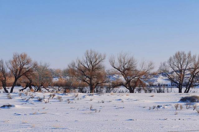 看了指示牌才知道它有个很好听的名字——月牙湾。其实它并不难找,就在古海温泉十分钟车程的地方。不知道是不是因为冬季萧索路程不好走,并无人发现这一处美丽的存在。好似被遗忘的角落。