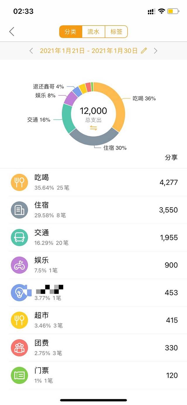 总花费12000,6个人分摊下来人均2000元左右。