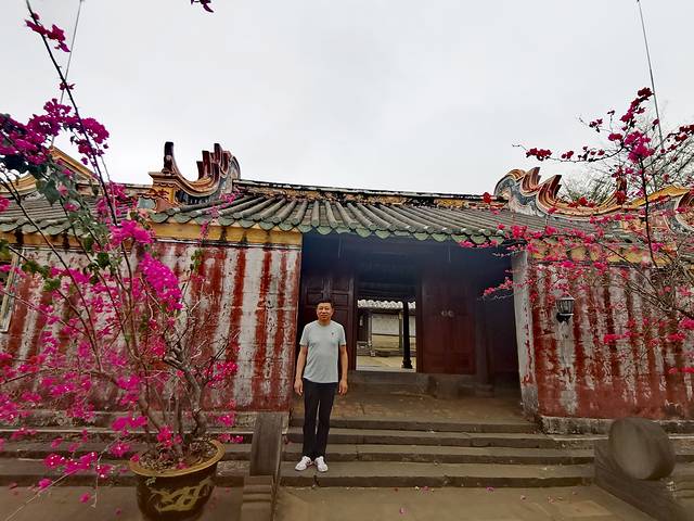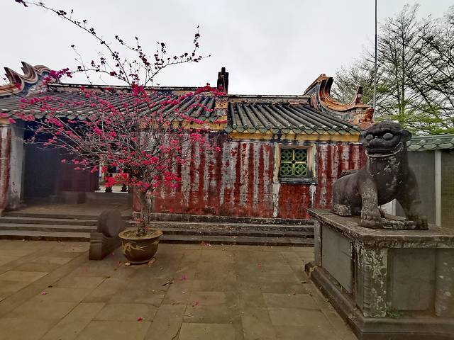 李家宗祠大门的神兽和烂漫的杜鹃配在一起煞是好看