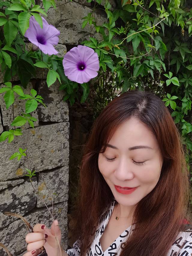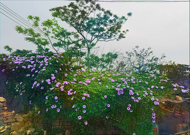被浅紫色牵牛花铺满屋顶的石屋真的好美 ,整个小屋都是,但已废弃可惜