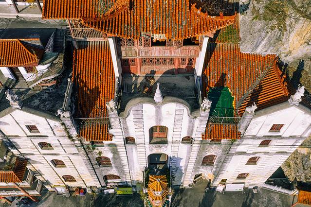 观音岩依山岩自唐代以来而建,后屡建屡毁,现存木结构庵宇系清代所建,庵宇共分九层,取九九归一之意,还是非常讲究的。