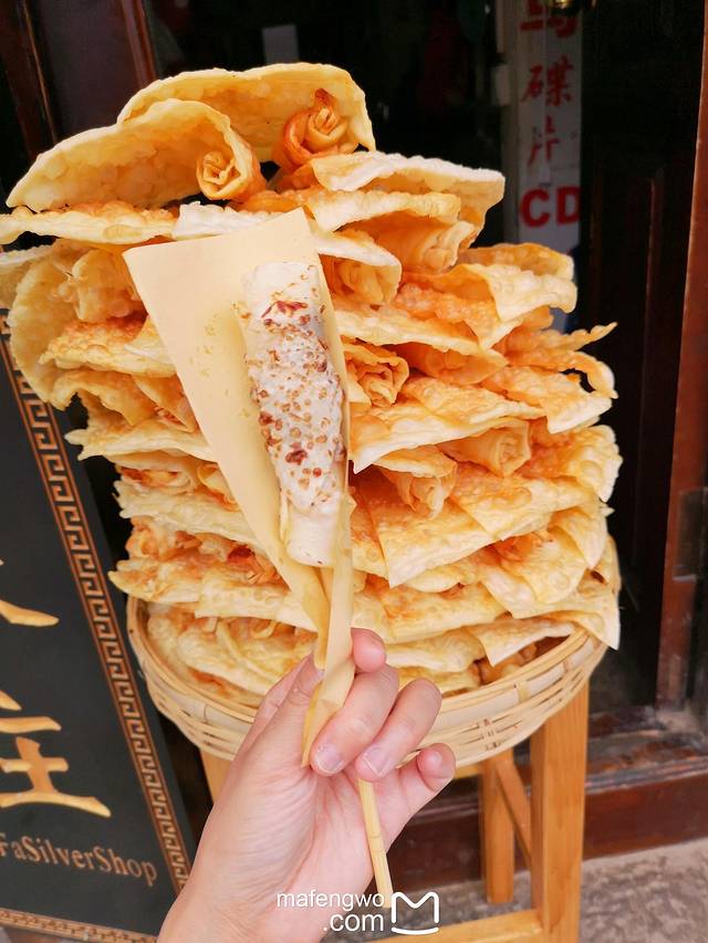 这个饵块,大理古城处处有卖,油炸和烤着吃均可,一般辅以鲜花酱,但我不爱吃鲜花酱的甜味,就给老板要了辣椒面,配着饵块吃味道奇特!建议尝试!