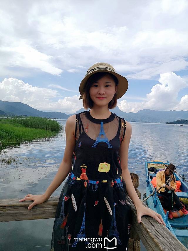 这次特意在大理古城购买了一套改良版的古装,在洱海旅拍时穿着。