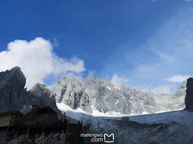 玉龙雪山为云南省丽江市境内雪山群,是北半球最近赤道终年积雪的山脉,隔江西与中甸雪山、东与绵绵山相并列,北自三江口,如扇面向古城展开。全山的13座山峰由南向北纵向排列,主峰扇子陡最高处海拔5596米,终年积雪。