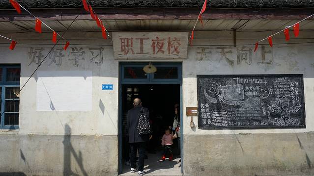 没想到诺大的停车场满满当当,人流如织。其实这里不“古”,六七十年代的房子,曾经的万山汞矿职工生活区被较好地保留下来,被整合为“那个年代”景点,初到这里觉得也有点儿意思。这些建筑我多少还有些记忆。