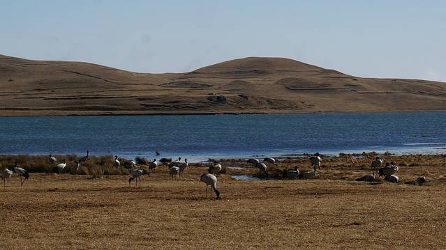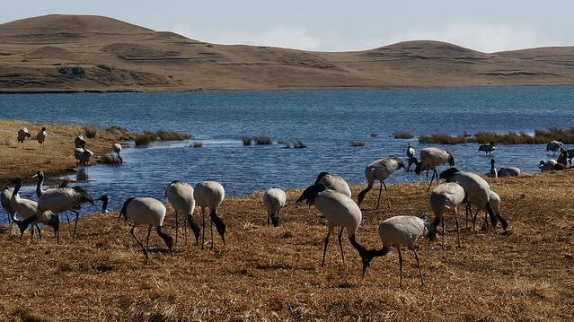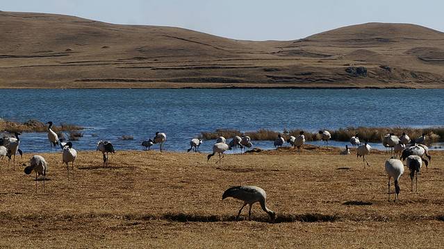 黑颈鹤是国家一级保护动物,主要在青藏高原繁殖,云贵高原过冬,是世界上15种鹤类中唯一在高原上繁殖和越冬的,数量十分稀少。