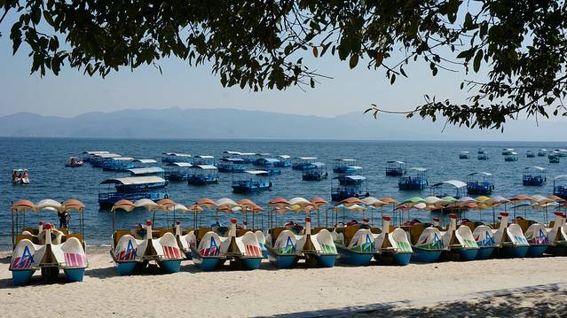 抚仙湖,湖水晶莹剔透、清澈见底,古人称为"琉璃万顷",位于玉溪市澄江市、江川区、华宁县之间,湖北端距昆明最近52公里。在昆明弟弟家闲来无事,一家人去了一趟抚仙湖,他们都来过不止一次了,这次算是陪我来玩。第一天中午抵达,先后去了禄充风景区、樱花谷,第二天环湖。