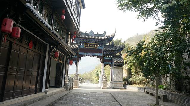 青石板的街和各种商铺与"马栈",均悬挂着古色古香的匾额楹联,凡词句书法,皆隐现着抹不开化不去的万古云烟,有人言道"南有和顺,北有豆沙"。