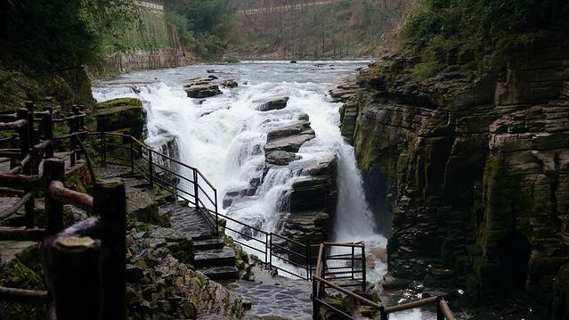 腾龙洞早上八点半开门,我八点就到了,等候了半个小时,初入景区的那段瀑布倒是觉得非常不错。洞外风光山清水秀,水洞口的卧龙吞江瀑布落差20余米,吼声如雷,气势磅礴。