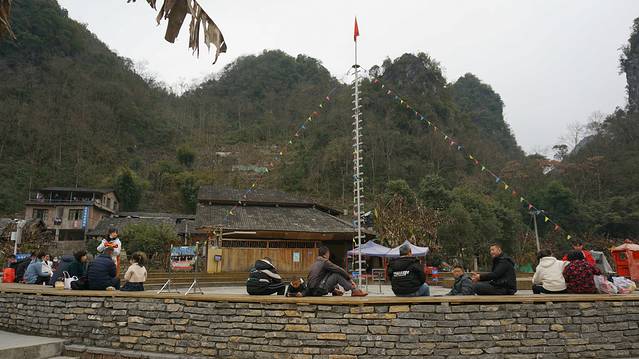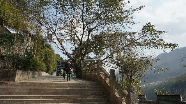 峡谷需要坐船游览,怎奈就我一个人,大船不开,我索性先去游客接待中心上山的布依族寨子里溜达溜达。
