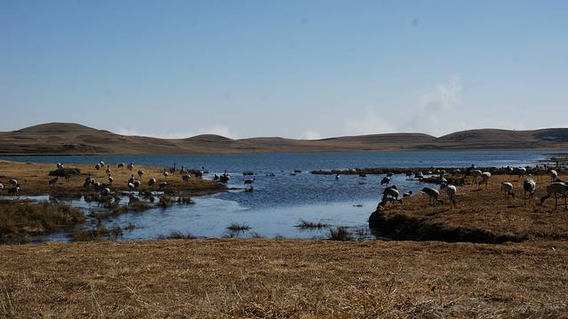 大海子黑颈鹤保护基地是中国目前海拔最高的以黑颈鹤及其越冬的亚高山湿地生态系统为保护对象的国家级自然保护区。