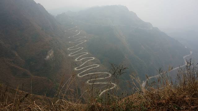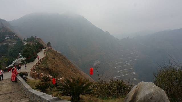 从今天开始返程安徽了。贵州去过多次,黔西南的景点剩下的也不多,昆明开车出来,中午就抵达了晴隆二十四拐。晴隆二十四道拐抗战公路,是"史迪威公路"的形象标识。古称"鸦关",雄、奇、险、峻,有一夫当关,万夫莫开之势。从山脚至山顶的直线距离约350米,垂直高度约260米;在倾角约60度的斜坡上以"S"型顺山势而建,蜿蜒盘旋至关口,全程约4公里。