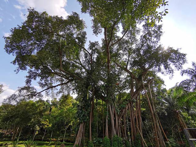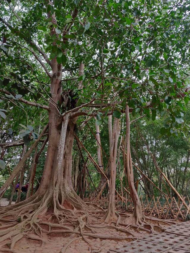 独树成林景区位于打洛边境的曼掌村附近,紧邻中缅边境。园区内有棵千年古榕树,据专家推算,这棵树有上千年的树龄,共34个根立于地面,树高有50多米,树幅面积达2200平方米。