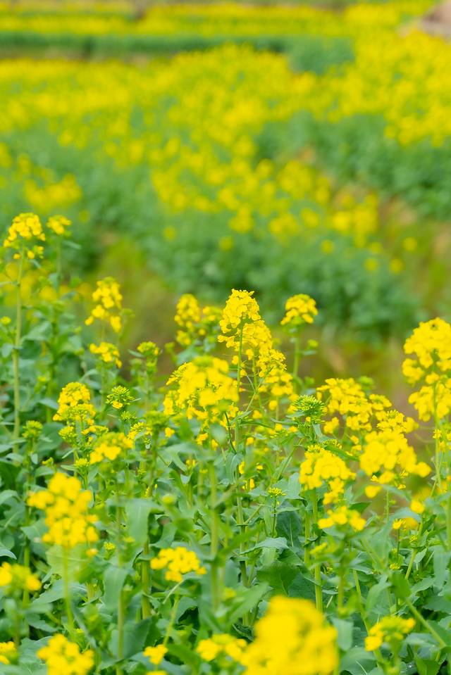 这儿的油菜花是平原式的田野,第一块田畈里种满了油菜,但由于品种不同,花期也不相同,有些可能含苞待放,有些可能已经在盛放了,如果要拍照,可以找几块盛放得最为鲜艳的拍。
