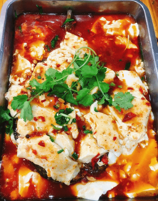 夜晚的荔波古镇很适合拍照,对吧。当天晚上我们吃了这个烤鱼,这豆花拌饭真是香啊。