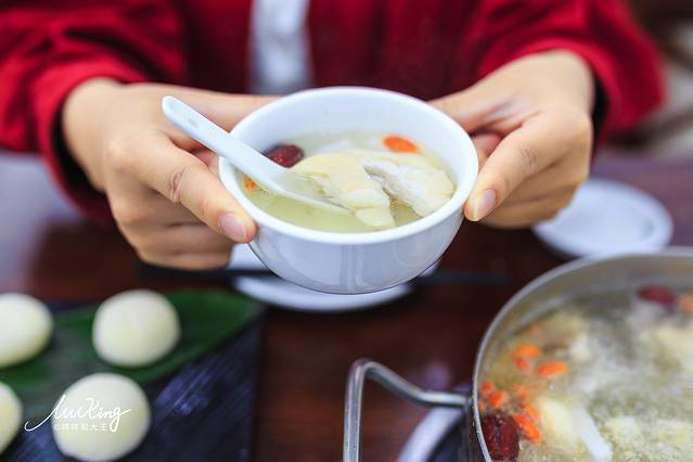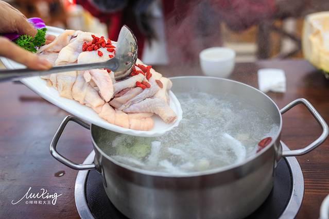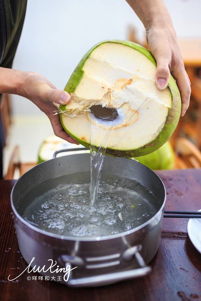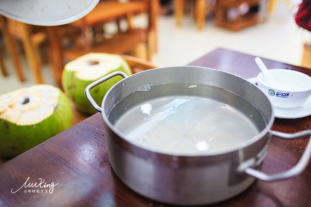 🐔原味椰子鸡汤:三个巨大的椰子现场倒入锅中做锅底,一滴水都没加!!!加上椰肉和椰林走地鸡,煮完后的鸡汤清甜爽口,一点都不腻,我们两个人愣是连续喝了半锅椰汁鸡汤后才开始涮其他的!煮熟的美食再配上海南特色的蘸料,鲜嫩又美味。剩下的椰子我们还让老板给打开吃了椰肉,真的是一点都不浪费~