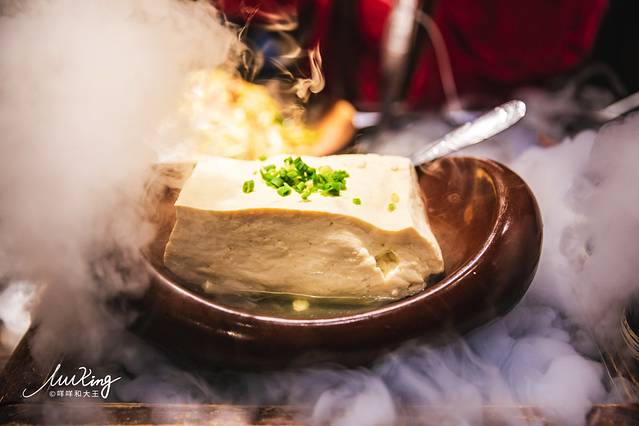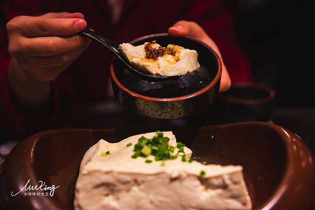 ☝一块豆腐:他家的招牌菜,一块大豆腐,摆盘很用心,仙气满满。豆腐是用石磨现磨的,豆腐超级鲜嫩,一点豆腥味儿都没有,无论是单吃还是配上3种小料都很可口。