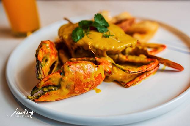 咸蛋黄炒蟹:他家必点的就是螃蟹了!螃蟹的做法有黑椒炒蟹、麻辣炒蟹、蛋黄炒蟹,可以根据自己喜欢的口味选择~由于喜欢咸蛋黄焗一切,所以选的蛋黄口味。贴心的在制作时就把蟹钳给砸开了,蟹肉肥而鲜美,和手一样大的蟹钳肉超级多,连小蟹腿都有肉!