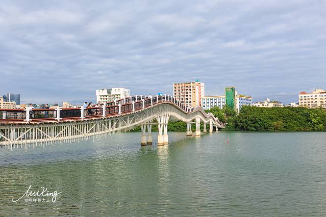 据介绍,三亚的河流上有大大小小的桥梁174座,仅情人桥就有6座。位于三亚河畔的这座情人桥是本地人遛弯乘凉的好地方,它是一座木面桥,建造于2004年,全长170米,高低起伏的白色桥廊远远看去像一条白龙横跨三亚河上,据说情侣们在桥上走一走就可以长长久久哦~