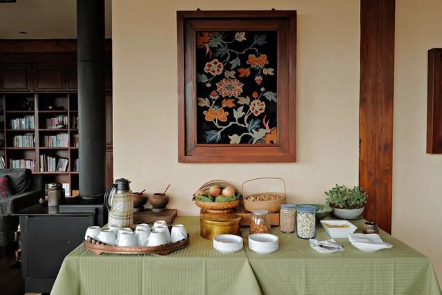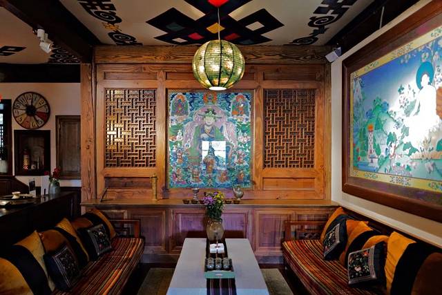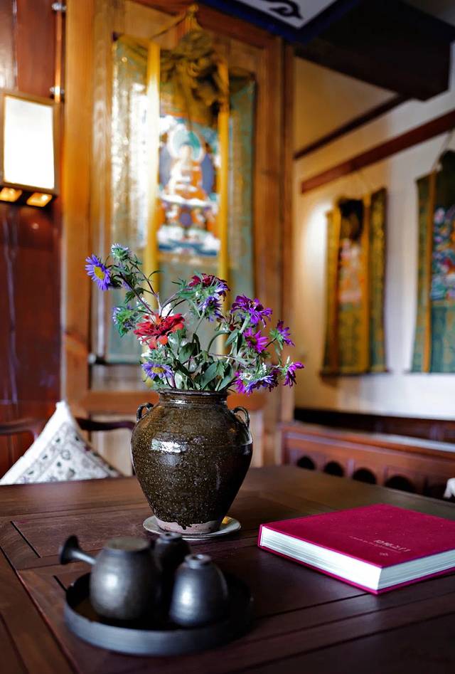 这次回到心中的香格里拉,先入住的是松赞林寺旁的绿谷山居。这里原是酒店创始人白玛多吉先生的老宅,由一座精致低调的藏式土木结构小楼与庭院组成,20年间白玛多吉先生许多收藏都被摆在绿谷,随处可见的佛造像、老唐卡、传统藏毯,好似一间私人的“藏文化博物馆”。知名旅行网站连续十二年将松赞绿谷列为“年度旅行者之选”。