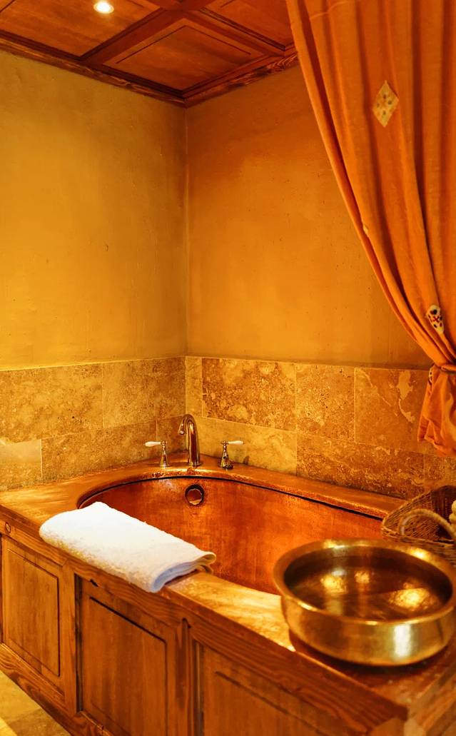 房间还配有现代化的开放式厨房、壁炉,以及闪闪惹人爱的红铜大浴缸!!!我真没想过还能在海拔3280米的香格里拉泡澡~工作人员告诉我,松赞酒店专门养了一个“鹤庆铜器”的制铜团队,为11家酒店打造所需铜器。晚上开夜床还会送来热乎乎的牦牛奶。