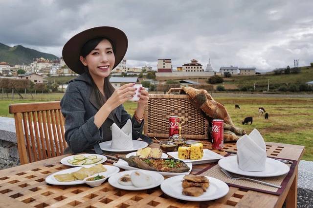 松赞林卡酒店前有一大片空旷的草甸,日光明朗,草地清新,村庄连着寺院,看着云卷云舒,来一场藏式“郊宴”BBQ也是没谁了!