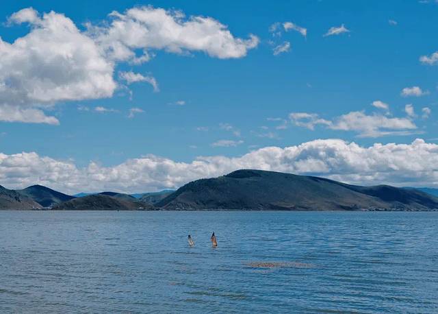 七林师傅指着湖中间的旗帜告诉我们,这是藏民海葬的地方,所以他们是从来不吃鱼的。