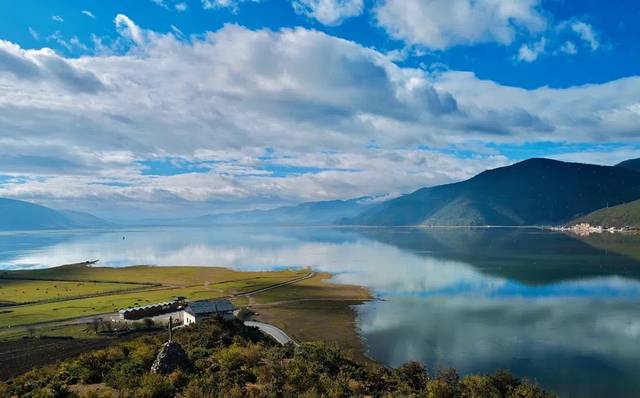 周边保留了相对完整的藏族农牧生活风貌,连片的青稞地、藏家村落,成群的牛羊随草海起伏,真实应了那句“风吹草低见牛羊”。