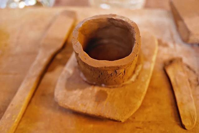大家坐在藏式的堂屋里,在老师的指导下揉捏拍打着泥巴,世代相传的古老手艺看似简单实属不易。最后老师帮我在杯子上刻了藏八宝之一的吉祥结。