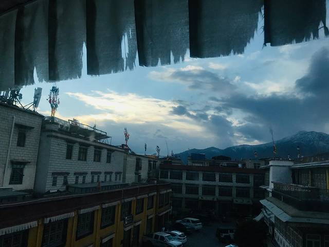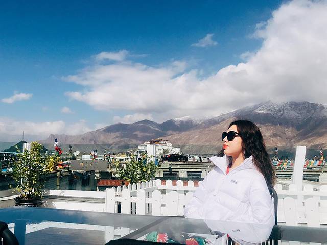 今天是休整日,开启逛吃逛吃的一天。我这几天在车上因为要拍视频,还害怕这山路,所以一路上都没睡过,晚上基本也就睡五六个小时,真的是累坏了。花花和大莹子一早出门去修手机了,我就一个人躺在酒店补觉,睡到了快12点,睁开眼睛就看到了远处的布达拉宫,好幸福啊。