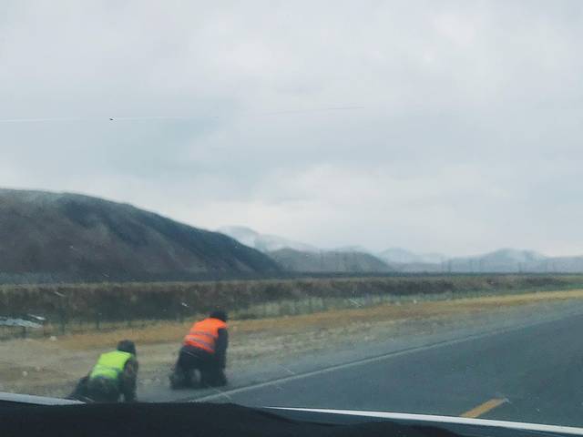 然而,人生中第一见到这样的限速方式,虎虎师傅说,没有摄像头,全靠这一张纸,你可拿好了,千万不能丢。然后就给我们讲了一个笑话,说有一个人在高速口拿到了这个条,以为是特别重要的东西,于是一路狂奔送到了下一个高速口,说刚警察交给我一个很重要的东西,我快马加鞭的给送过来了,然后人家说“你好,你超速了”,简直要给我笑死了,哈哈哈。