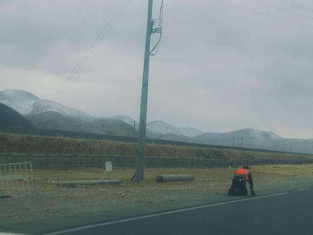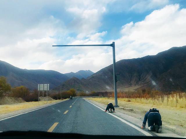 稍作休息之后,开始返程,路上又遇到了两个到拉萨朝圣的人,虎虎师傅说他们这一路上自己带的有青稞饼什么的,就这样吃饭,晚上太晚了就在路边找地方休息,这一路特别的辛苦,除了敬佩,也不知道说什么了。