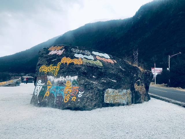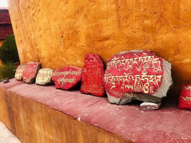 我这还有一个爱好,就是喜欢捡好看的石头,本来想带几个走呢,结果看见旁边的尼玛堆,突然想起来之前看过一个恐怖电影,说这些石头不能乱拿,我确实是怂,又给默默的放回去了。后来问了度娘,说是很多石头上都有六字真言,确实是不能拿的。