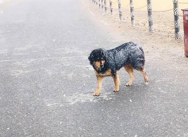 这只狗狗特别乖,特别可爱,一直在我们前面带路走着,风太大了,我们都走的特别慢,它还时不时停下来回头看看,等等我们,太喜欢了。