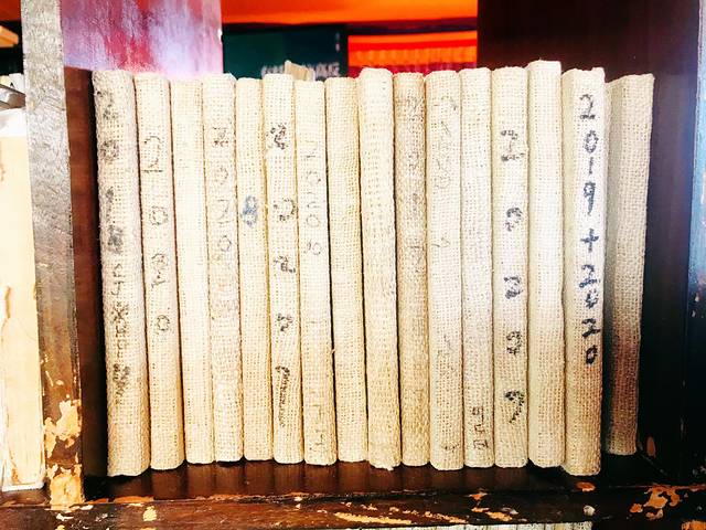 二楼是藏经阁,里面有2个佛塔,还供奉了一尊佛像,两边布满了经书,一进门就有种特别宁静 的感觉,有一束光正好从上面打在佛像上,无比的神圣。后来我们在布达拉宫也看到了这样的经书储藏方式,特别的震撼。