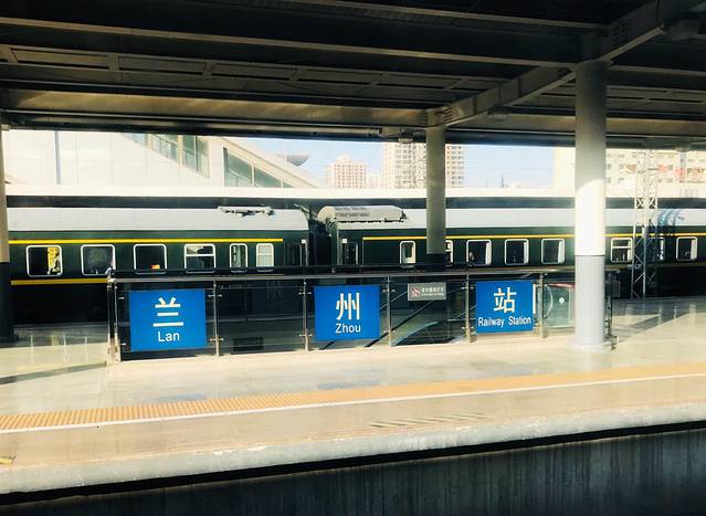 火车在兰州站经停15分钟,我们穿着睡衣直接就跑下去撒欢了,在“广州-西宁/西宁-拉萨”的标志前,都是想要留住这一刻记忆的人们。