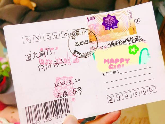 因为走的太匆忙,没有来得及把写好的明信片寄出去,走的时候就留给了虎虎师傅帮忙。回来的第二天就收到了虎虎师傅的视频,明信片顺利寄出。给他转了红包也不肯收,说计较这十几块钱,太不是我们西北人的性格了,哈哈。