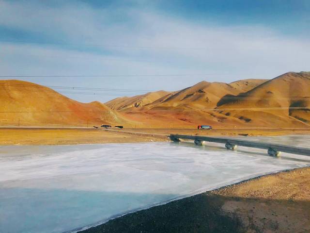 路边的景色慢慢开始变换,不断有冰川、河流出现,广袤的大地上,几乎看不到绿色,蓝蓝的天,黄色的土地,白色的冰川,就这样的组合,竟然也能变化出这么多不一样的美,越看越喜欢。