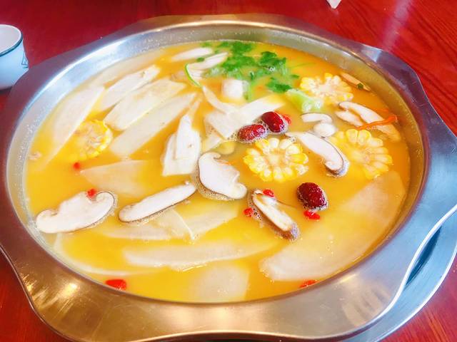 还记得之前在稻城吃的牦牛锅特别的好吃,来到这里也一定要来上一锅。这个汤真的特别的香,味道非常浓郁,里面有杏鲍菇、香菇、玉米、红枣、枸杞、党参、虫草花,配料非常的丰富,绝对的养生必备。