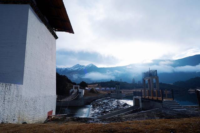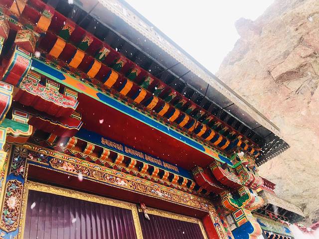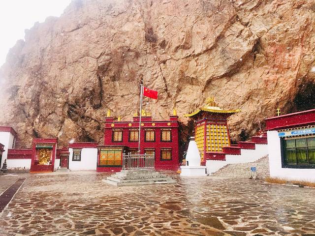 这个风简直能把人吹走了,雪越下越大,打到脸上疼疼的,根本睁不开眼睛。刚好前面有一个小房子,就想着进来先避一避。结果进来之后才知道,这里是扎西岛寺。