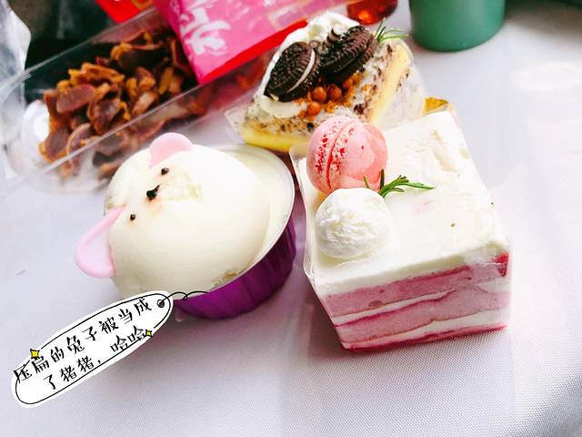 今天才是正儿八经的生日,这几个小蛋糕跟着我也是遭了罪了,昨天拿的东西太多了,一不小心就把它给压下面了,这只可怜的兔子被压的,花花问我,这是只猪吗?哈哈哈。