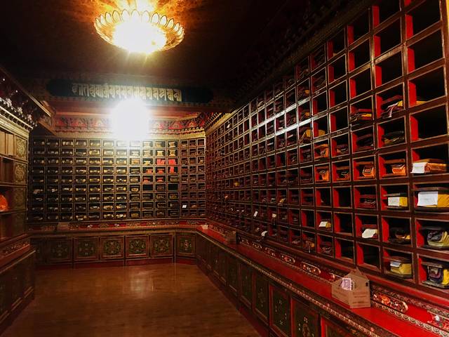 再往前走就是一个非常小的房间,有位僧人在里面诵经,经鼓一声一声的直击内心,我真的,除了敬畏,不知道怎么形容当时的心情,所有的动作和说话都是小心翼翼的,气都不敢喘,也不敢看他,生怕做错了什么。