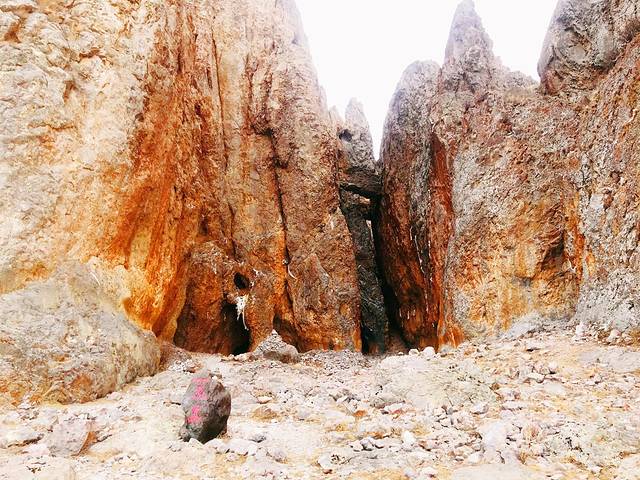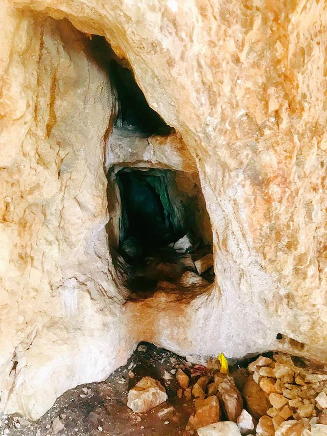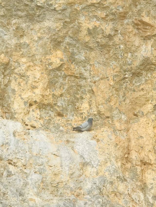 右手边是一个山洞,前面竖了一块牌子写着“龙骨”,这场景瞬间就想起了盗墓笔记,这好奇心立马就上来了。跟着三个大哥沿着山洞往里走,看到地上好多鸟粪,一开始还以为是蝙蝠,再一抬头,一只胖乎乎的小鸽子蹲在上面,太可爱了。