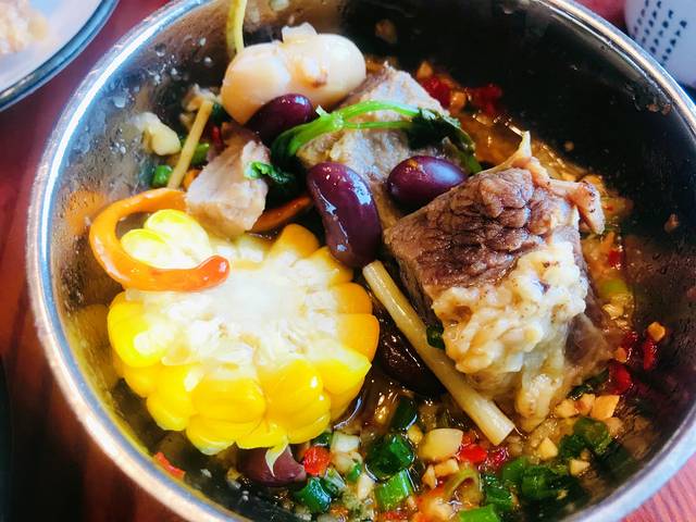 我们点了一斤的排骨,这个分量简直超出了我的想象,一块肉有半个拳头那么大,本来以为一个人吃两块就没有了,结果满满的一锅肉,我都怀疑是不是给我们上错了,这是一斤吗?这个肉说实话有一点点肥,吃多了就有点腻,感觉有点糊嘴。