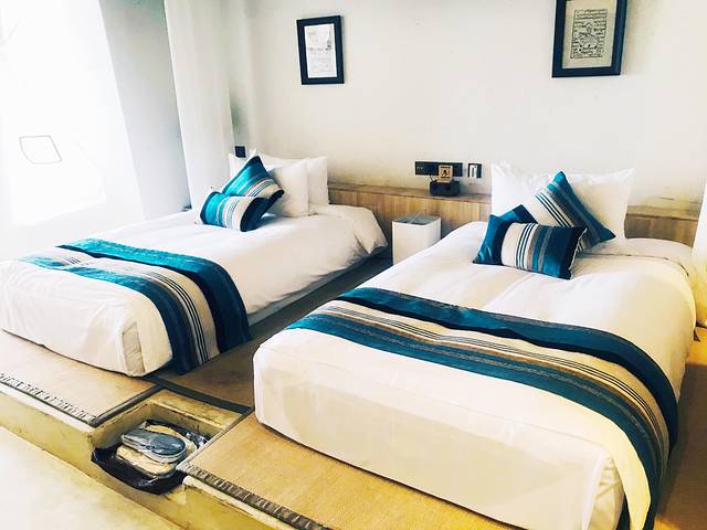 定酒店的时候挑了很久,一是装修一个要有特色,得符合我的审美;二是位置要好,不管去哪里都得方便。第三,也是最最重要的,就是老板人要好。还没有来之前,就在微信上问了她很多问题,我们租车的虎虎师傅也是她推荐的,来了之后才知道,这位老板人称“红姐”,听起来,不明觉厉,哈哈。