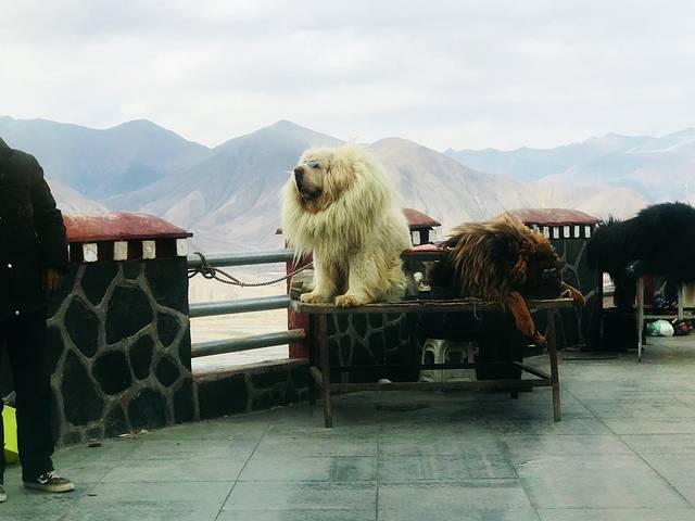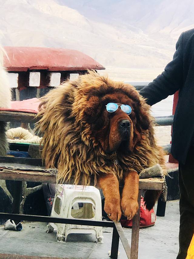 到山顶之后,会有藏獒、牦牛和小山羊在营业,我们去的时候已经5点多了,还想着它们是不是已经下班走了。这只黑色的狗狗简直太可爱了,一脸不情愿的爬在那,耷拉着大脑袋也不动,又是被迫营业的一天,太好玩了。走近了看才知道,它们脖子上不是毛,是人为套上的围脖,这操作也是绝了。