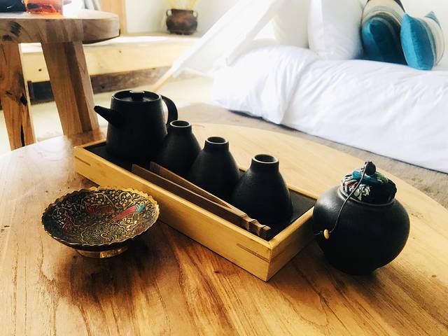 酒店前台有许愿牌,据说还是被开过光的,于是一人拿了一个,许个小愿望,店里的小哥哥会帮忙挂在门外的大树上,微风吹过,满树的风铃叮叮当当的,特别的美。