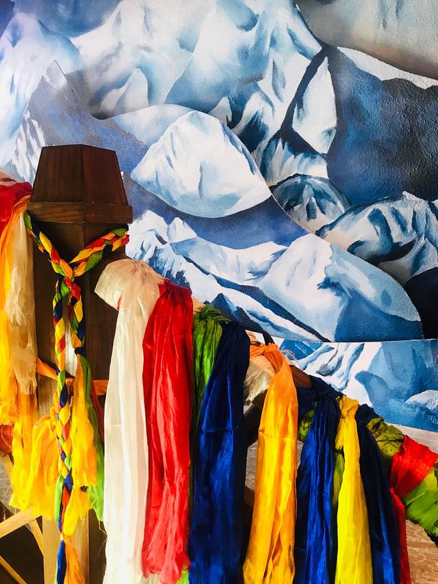 经幡有五种颜色,蓝、白、红、绿、黄,顺序不能乱。蓝色代表蓝天,白色代表白云,红色代表火焰,绿色代表流水,黄色代表大地。